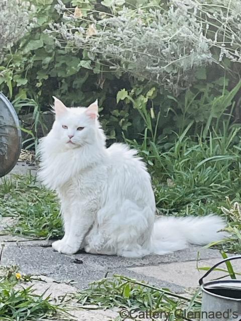 Maak kennis met Du Chatternelle’s Pearl’s Gaudi! Deze prachtige castraat met witte vacht en groene ogen werd geboren op 22 augustus 2018 uit Chatternelle’s Gucci (vader – white odd-eyed) en Du Chatternelle’s Pearl Mae Bailey (moeder – black silver tabby white blotched).